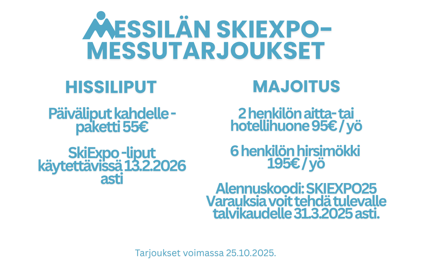 | 25.10. | Lauantai | 9.00-18.00 |