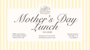 Mother’s Day will once again be celebrated at Messilä’s atmospheric Manor Restaurant with a traditional...