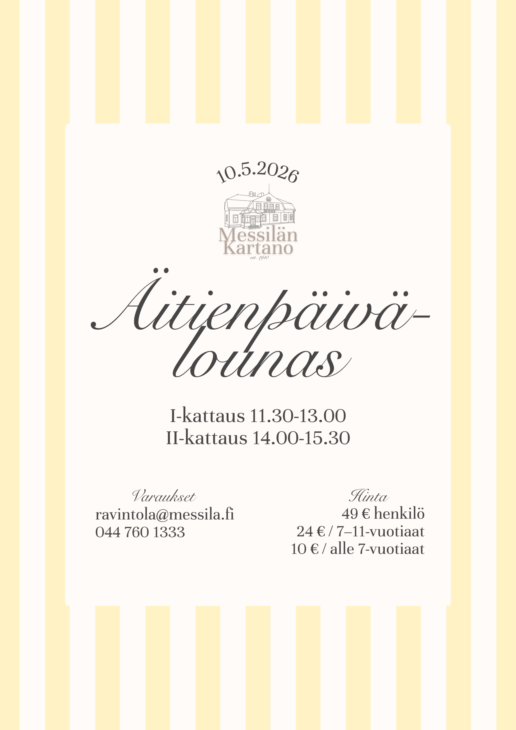 Sukujuhlat, syntymäpäivät, lanseeraus, tuote-esittely? Juhlia ja tapahtumia on moneen lähtöön, mutta yksi on vakio. Messilä tarjoaa tilaisuutesi arvoiset puitteet ja järjestelyt vuosien kokemuksella, omistautuen ja innostuen.