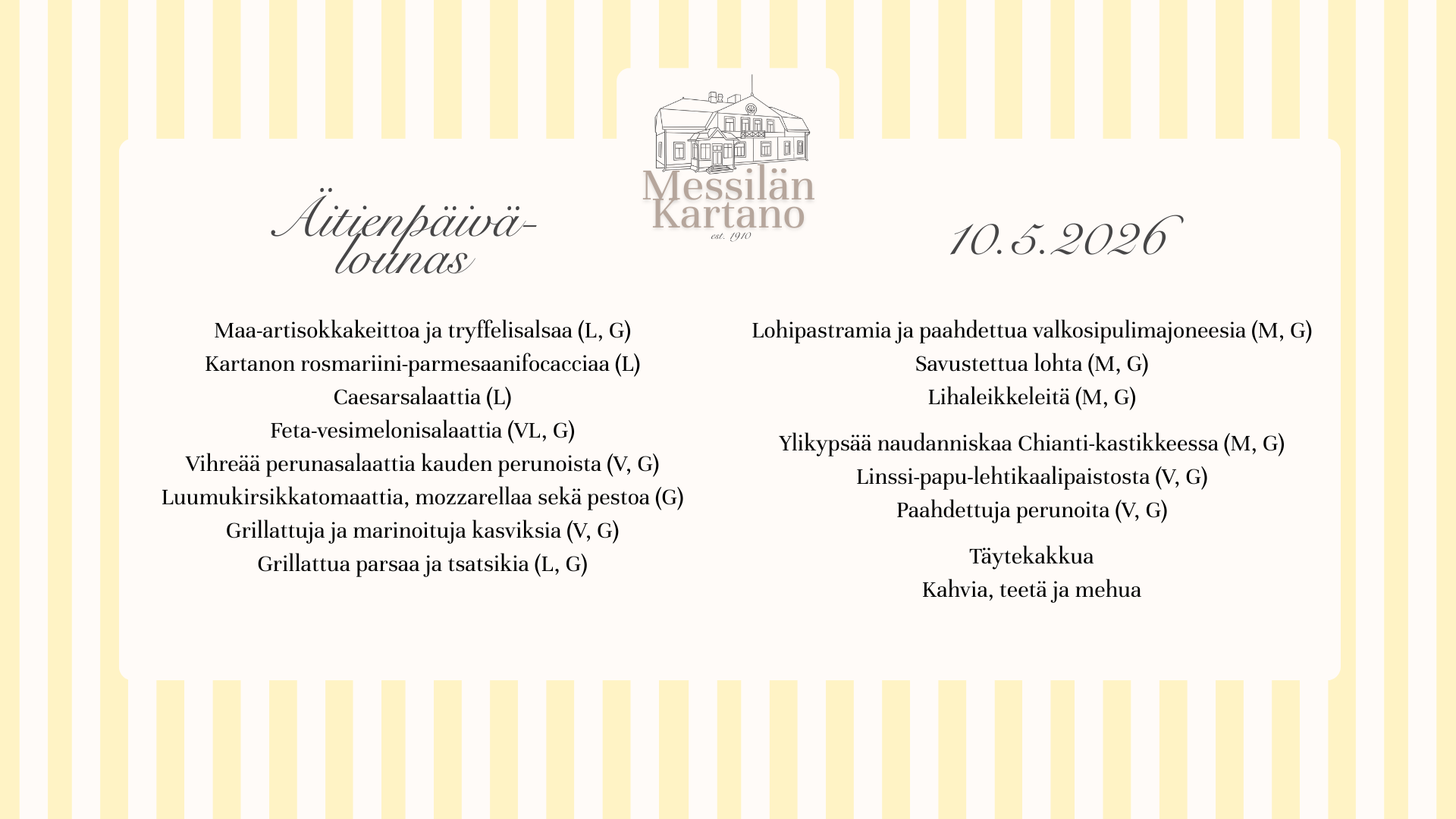 Kartanoravintolan äitienpäivälounas 10.5.2026